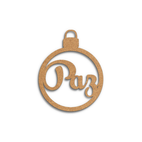 Bola em mdf de 3 mm, formato 100 x 80 mm, recortada a laser c/ palavra “Paz”. Palavra personalizável.
