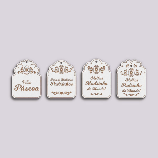 Conjunto de 40 peças, (10 Feliz Páscoa; 10 Padrinhos; 10 Madrinha; 10 Padrinho).✨