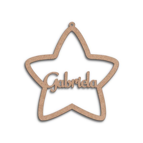Estrela de Natal em mdf natural, recortada a laser com nome personalizado.