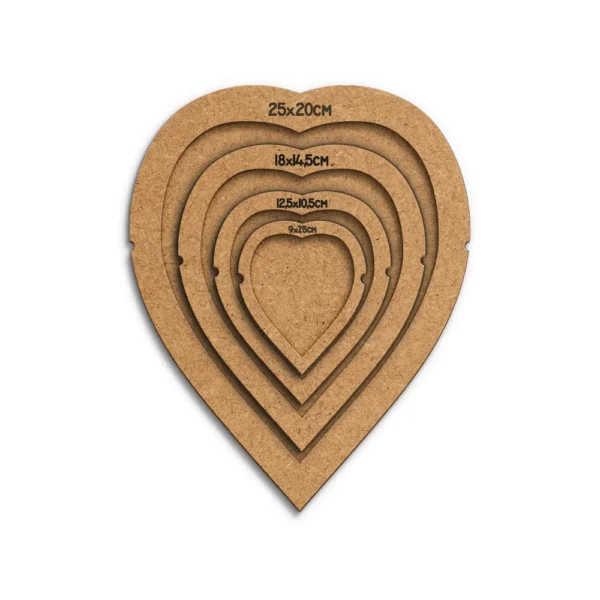 4 moldes macramé para folhas em forma de coração. Dimensões: 25 x 20cm, 18 x 14.5cm, 12.5 x 10.5 cm e 9 x 7.5 cm.