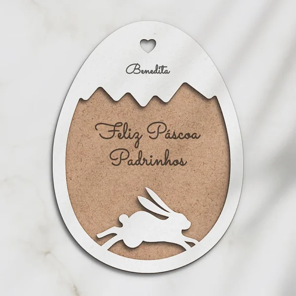 Ovo de Páscoa recortado em mdf branco e cru, com gravação a laser personalizada, tornando-o uma lembrança única e especial para dedicar aos padrinhos, familiares ou amigos. Este ovo oferece uma tela versátil para sua criatividade florescer. Use-o como peça central em decorações de Páscoa, decore-o com pintura, decoupage ou outros materiais para criar uma peça personalizada, ou utilize-o como base para elaborar peças de artesanato temáticas. A gravação a laser personalizada permite-lhe adicionar uma dedicação especial aos seus entes queridos, tornando este ovo uma lembrança memorável da celebração da Páscoa. Garanta já o seu e crie peças únicas que irão encantar e emocionar todos aqueles que as receberem! Precisa de outro tamanho? Fale connosco! 😊