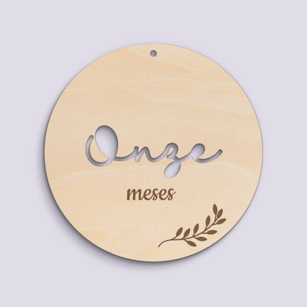 Placa redonda em madeira de choupo, recortada e gravada a laser. Celebre o mesversário da vida do bebé com estas plaquinhas personalizadas. 👼