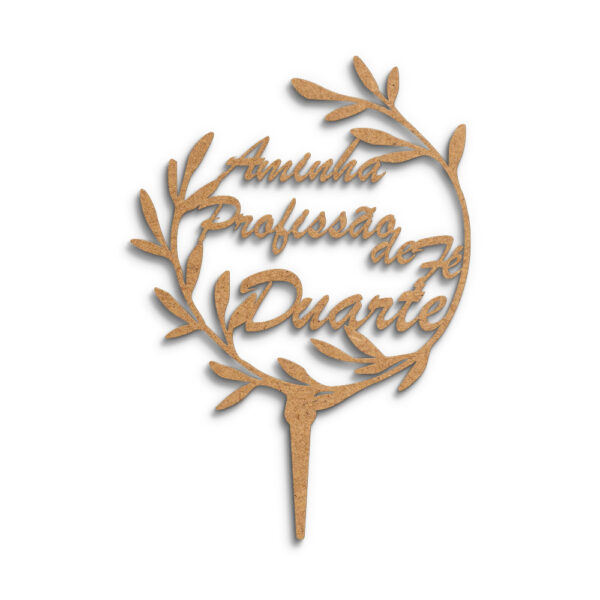 Topo para bolo “A Minha Profissão de Fé Duarte” em mdf de 3 mm, recortado a laser.