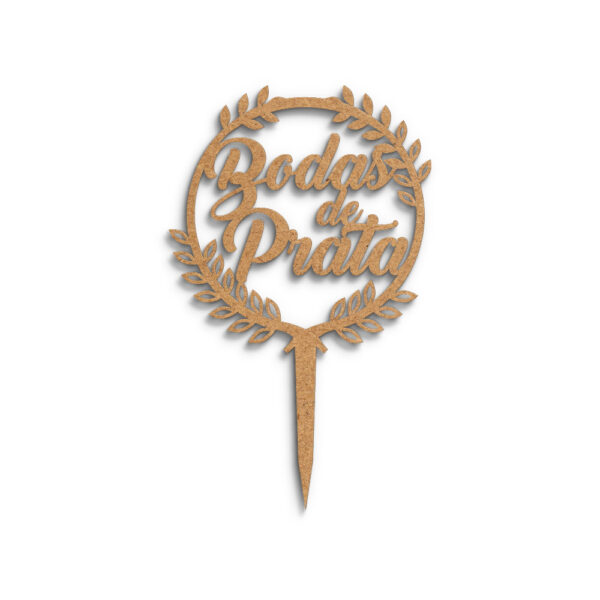 Topo para bolo “Bodas de Prata” em mdf de 3 mm, recortado a laser.